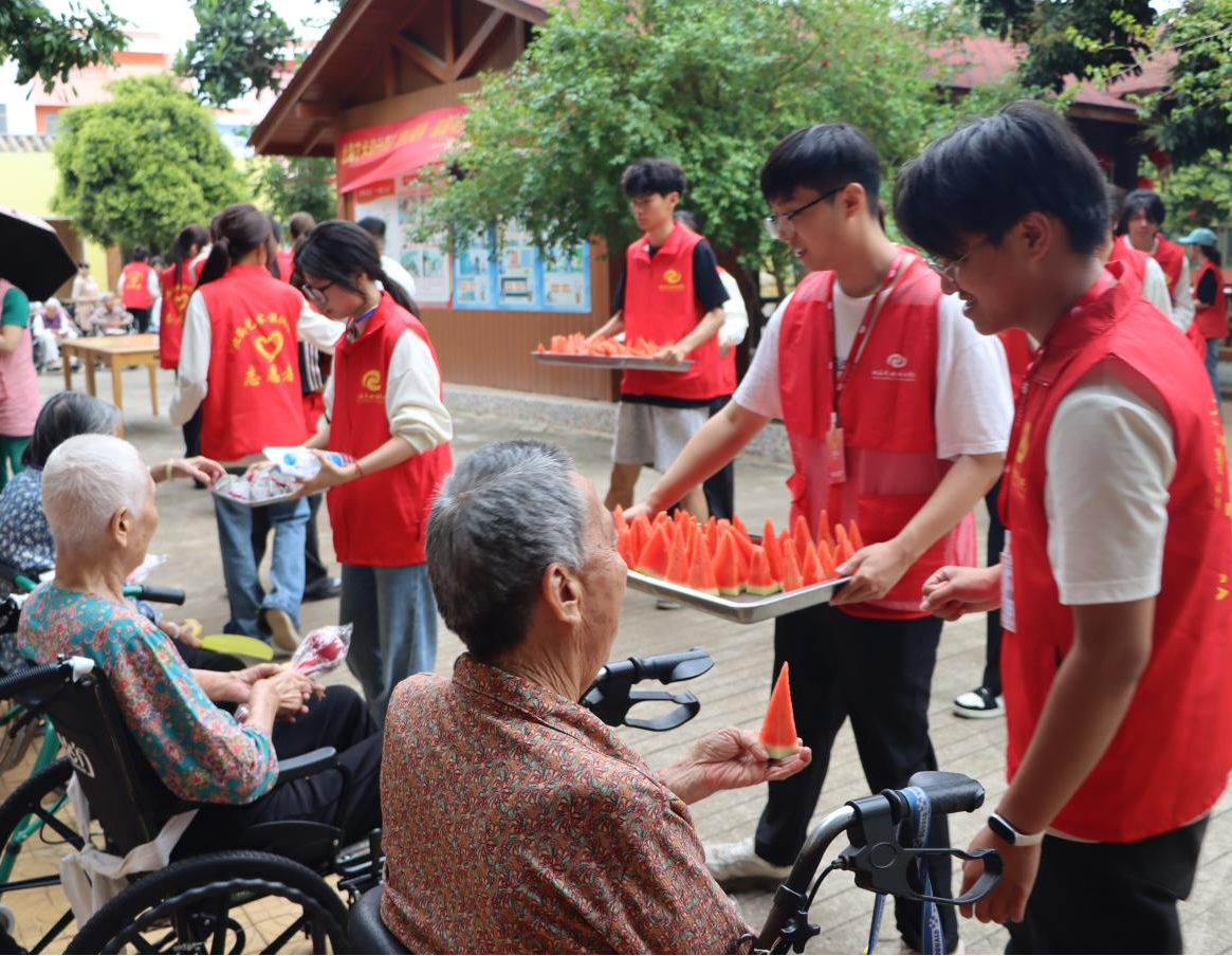 为进一步加强青年大学生的思想道德建设,传承敬老爱老的中华传统美德,营造社会和谐的良好氛围,4月26日,我校组织60余名志愿者开展了 “爱心相伴·温暖同行” 银滩养老院志愿活动,用实际行动为老人们送去关怀与温暖。