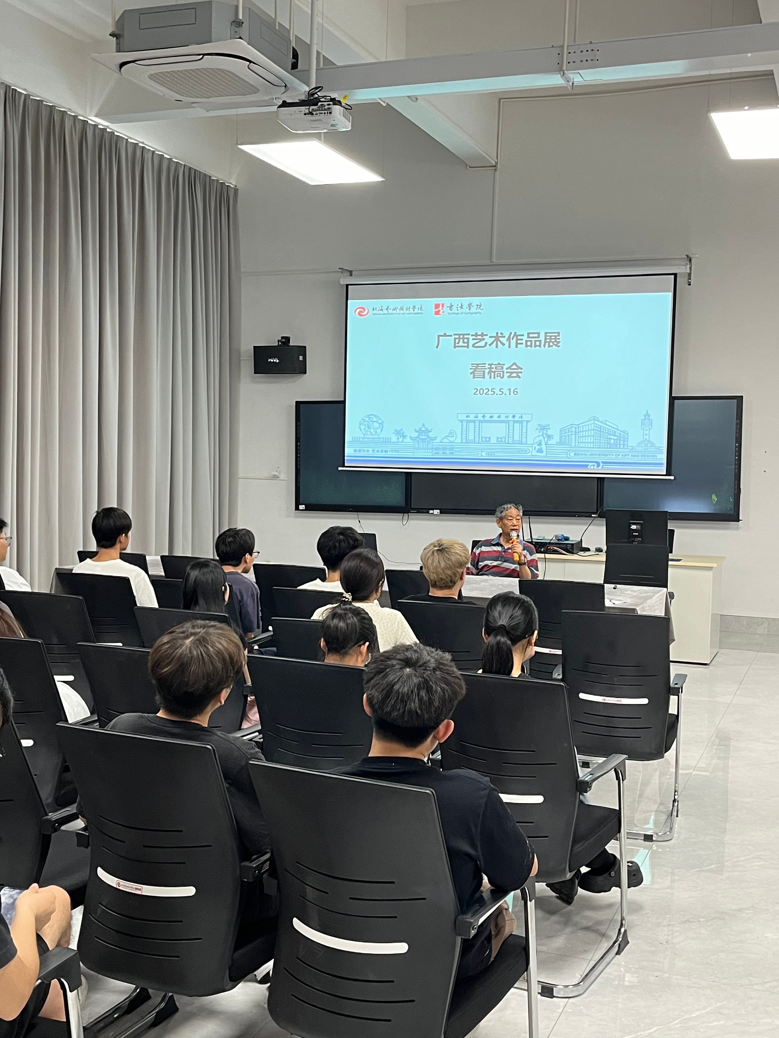2025年5月16日,书法学院组织广西艺术作品展看稿会,本次看稿会由我院客座教授张韬主讲,党支部书记喻广林、书法学专业教研室主任李鑫、实验室主任宁梦宇,和部分书法学院教师参与此次活动。书法学2022级、2023级、2024级共计30余名学生参加。