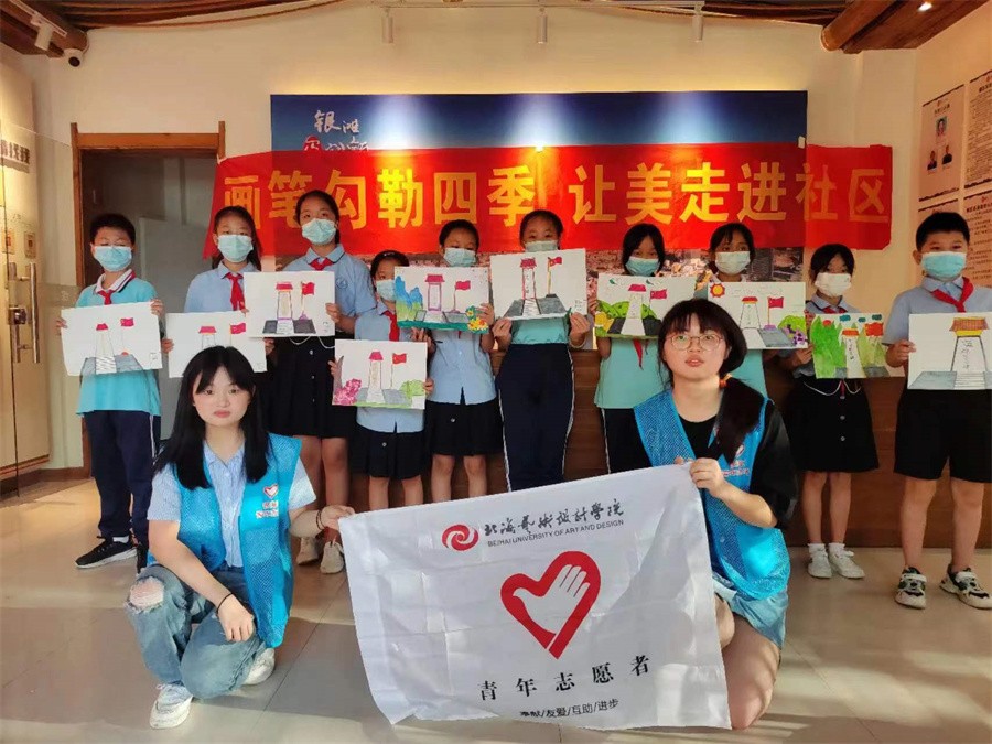 聚焦创建文明城市开展新时代文明实践活动。2022年,学校新时代文明实践中心开展理论宣讲30余次,组织开展志愿服务活动20余次,服务时长达2120小时;聚焦乡村振兴,开展“民族团结一家亲,艺术融合共发展”——三下乡社会实践活动;聚焦青少年成长,开展周末支教活动,志愿服务北海各社区、小学,为青少年提供免费绘画、声乐等课程辅导和防艾知识宣传等。北海“7·12”疫情期间,学校派出180名志愿者共670人次参与疫情防控战斗,为北海打赢疫情防控阻击战和歼灭战贡献北艺力量。