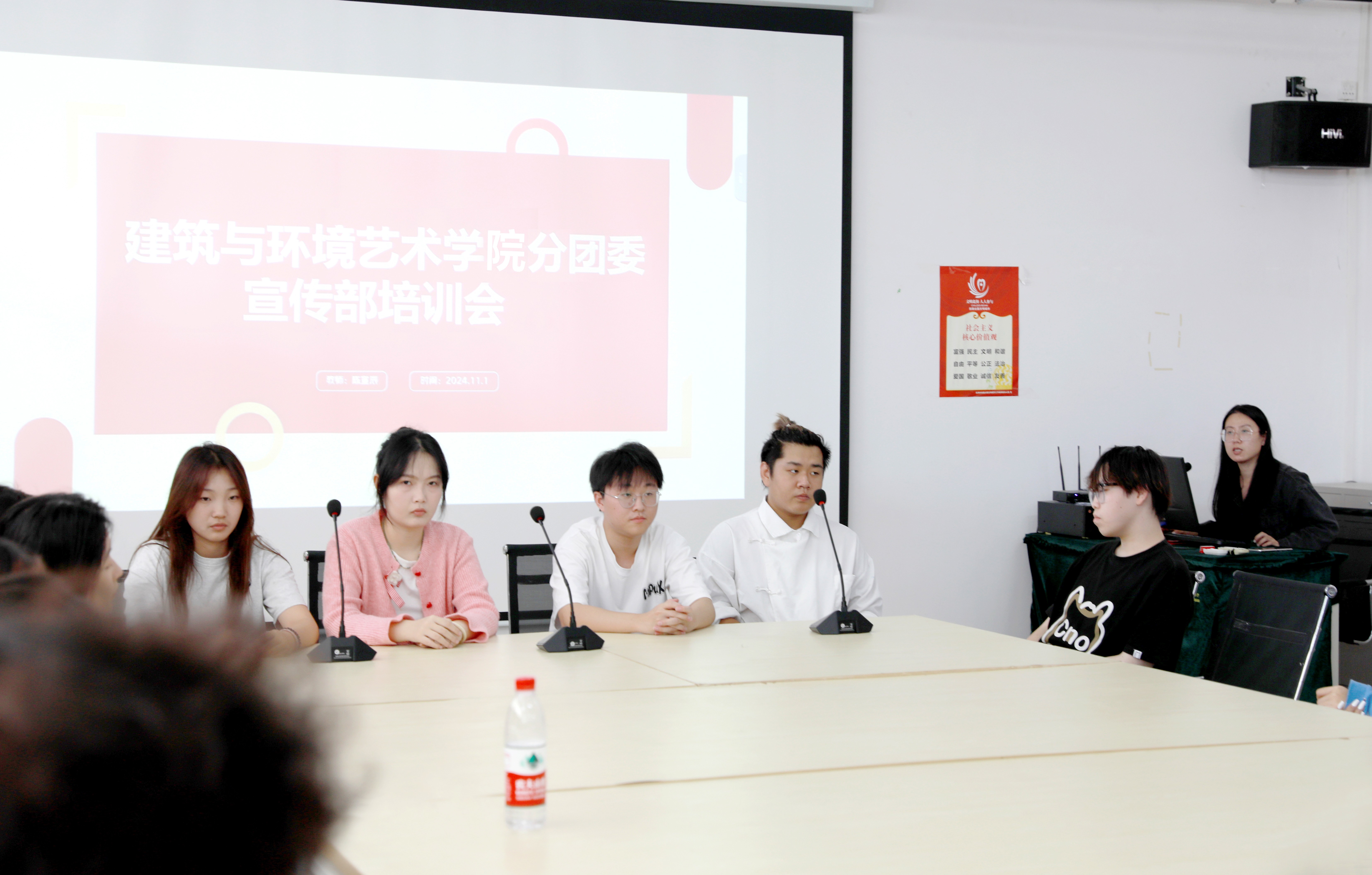 2024年11月1日,建筑与环境艺术学院分团委宣传部在公德楼507教室成功举办了一场写作与摄影技能培训。分团委副书记陈宣辰老师主持了此次培训,宣传部所有干事、部长和主席共同参与,旨在提高团队的新闻写作和摄影能力,以便更有效地宣传学院举办的各类活动。