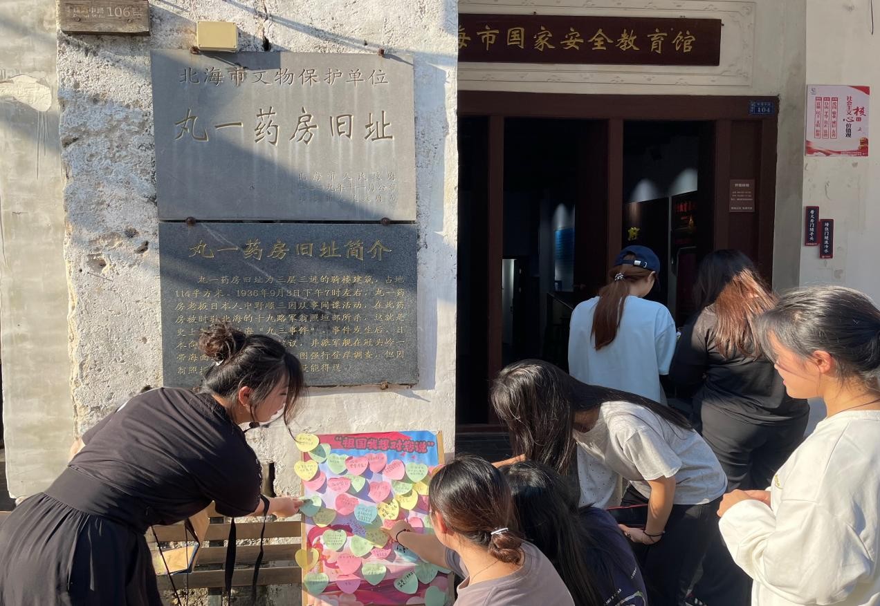 近日,为了增强团员青年对国家的认同感和自豪感,帮助他们了解国家的历史和传统文化,传承和弘扬中华民族的优秀传统,激发奋斗精神,我院环设2307团支部积极响应学校号召,组织团员青年们前往北海老街丸一药房旧址参观学习,开展了“传承红色精神,激扬青春力量”主题团日活动。活动旨在帮助团员青年认识到自己肩负的历史使命,激发他们的奋斗精神,为实现国家的发展目标而努力拼搏。