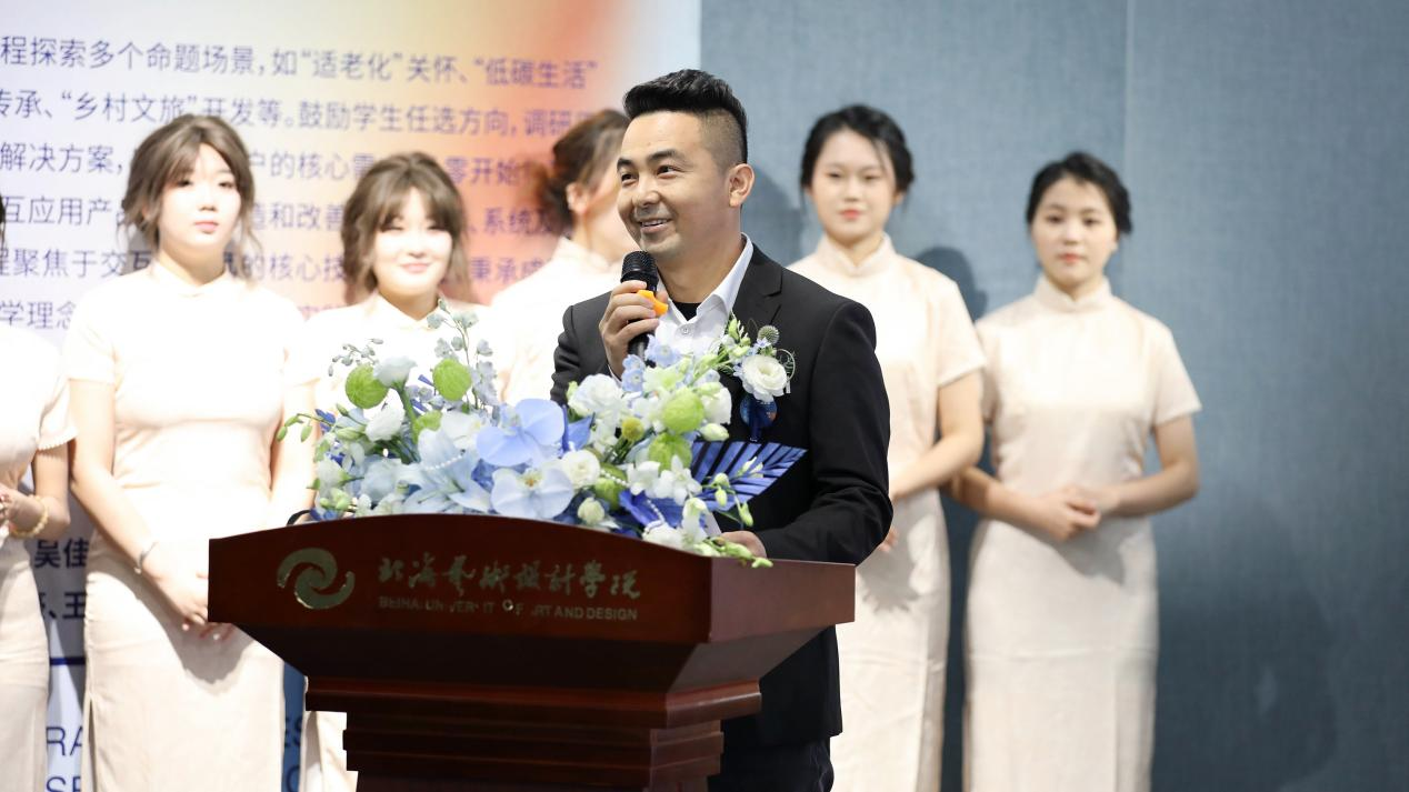 在全场观众的热烈掌声和期待中,卢新华校长满怀激情地走上讲台,用洪亮的声音宣布第七届“燃青春·创未来”数字媒体艺术信息     交互课程展——“弥新”正式开幕。