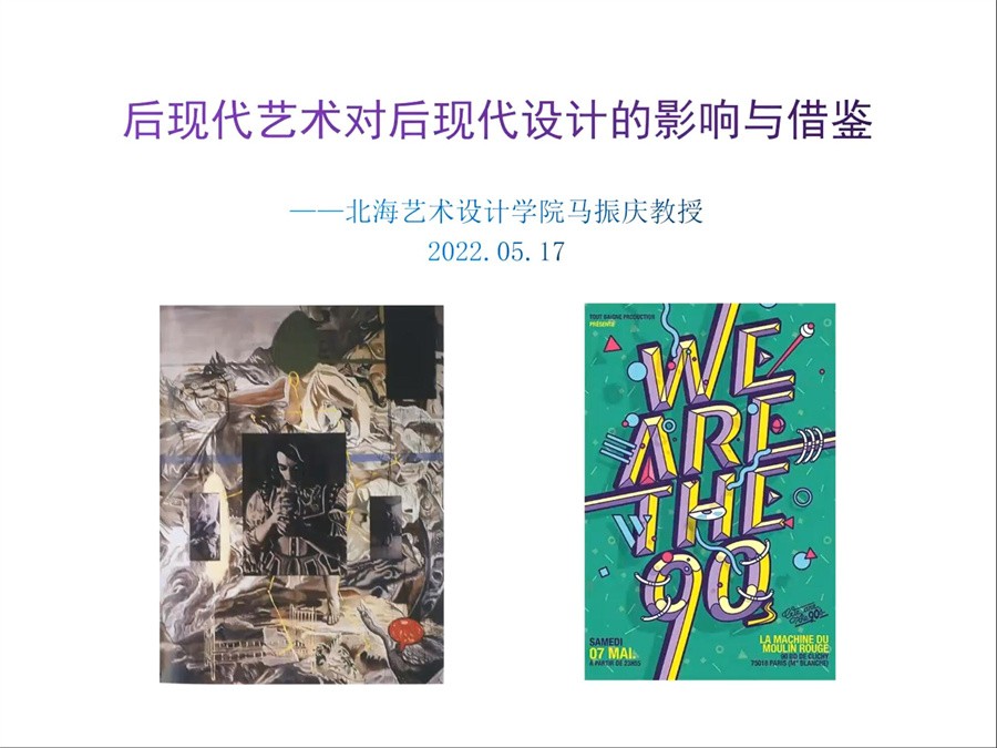5月17日,我校设计艺术学院教授马振庆为学校师生开展了一场题为《后现代艺术对后现代设计的影响与借鉴》的线上讲座。本次讲座由设计艺术学院副院长白建强主持。