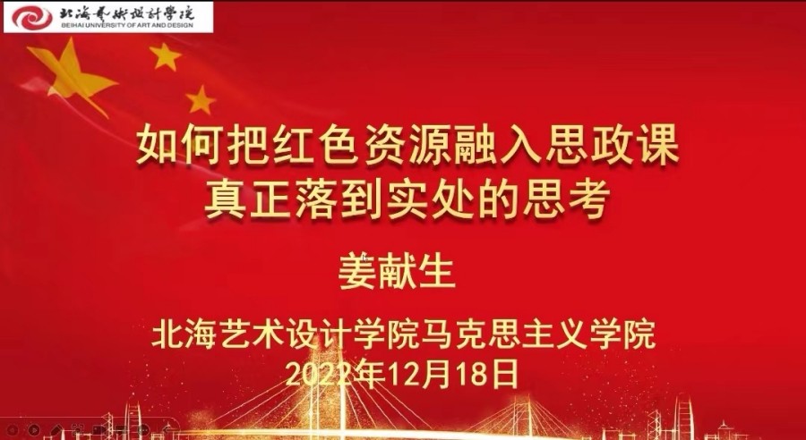 12月18日下午,马克思主义学院组织全体教师参加了由上海建桥学院主办、上海建桥学院马克思主义学院承办、教育部高校思想政治工作创新发展中心(上海建桥学院)协办的“红色资源与大思政课建设”线上理论研讨会。马克思主义学院院长姜献生教授应邀作主题发言。