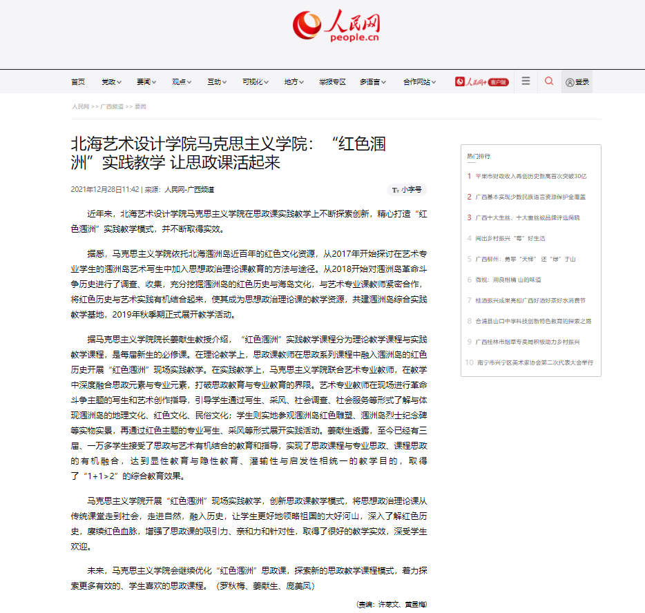 【人民网】北海艺术设计学院马克思主义学院:“红色涠洲”实践教学 让思政课活起来