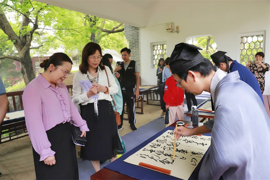 揭牌仪式结束后,现场还开展了各色相关活动,百人汉服走秀《东方神韵、盛世霓裳》尽显汉服饰文化之美;舞蹈表演《豆蔻年华》婀娜多姿,风采翩翩;翰墨芳华写天地,书画即兴创作彰显中华民族传统优秀文化风骨神韵;伴着余音袅袅的古筝演奏,冰清典雅的茶艺表演令人赏心悦目,现场还以茶会友,众人于茶宴品茶,深刻体悟特色汉文化的无限魅力。