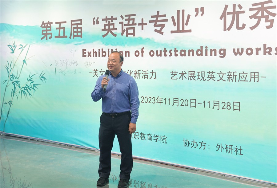 开展仪式上,副校长陶立阳向外语教研室的各位老师和所有支持本次展览的同仁表示感谢,并向入选该次作业展的同学表示祝贺。他表示,外语教研室举办的第五届“英语+专业”优秀作业展在我校形成了良好的英语和专业结合的学习氛围,提升了学生的英语学科素养,也为学生提供了一个互相学习、共同提高的良好平台。他希望通过作业展能够激发更多同学的学习兴趣,进一步加强英语与专业知识的融合学习。