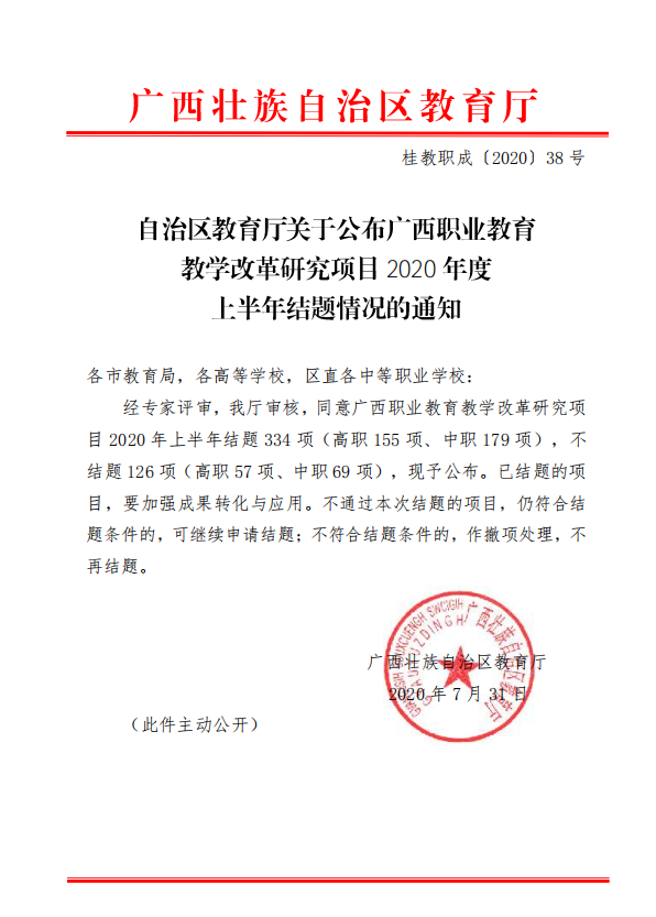 自治区教育厅关于公布广西高等教育本科教学改革研究项目2020年度上半年结题情况的通知