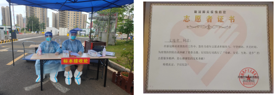 2022年2月,疫情形势变得严峻起来,而这个时候正值春运,疫情防控面临的任务更加繁重艰巨。杨子贤同学响应当地政府号召,主动加入志愿者队伍,积极参与当地疫情防控工作。在工作期间,认真负责,能力突出,协助有关部门完成各项任务,被当地政府评为“十佳志愿者”荣誉称号。