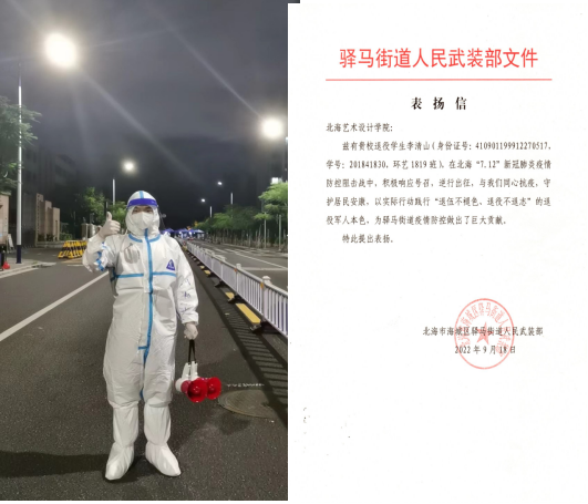 李清山,现为建筑与环境艺术学院环艺2014班学生,该生2019年9月入伍,2021年9月退伍复学。
