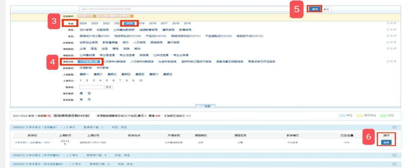 网上选课按照“初选、次选和退补选”3个步骤完成。本学期每位学生仅允许选1门体育课程,注意选择的上课时间不要与自己的其他课程有冲突。