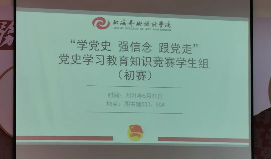 为庆祝中国共产党成立一百周年,进一步巩固“不忘初心、牢记使命”主题教育成果,教育引导广大青年铭记革命历史,进一步提高党性修养,坚定理想信念,永葆共产党人的精神追求和政治本色。我校于2021年5月21日中午12点30分在西校区图书馆503、504教室进行“学党史,强信念,跟党走”2021年党史学习教育知识竞赛。