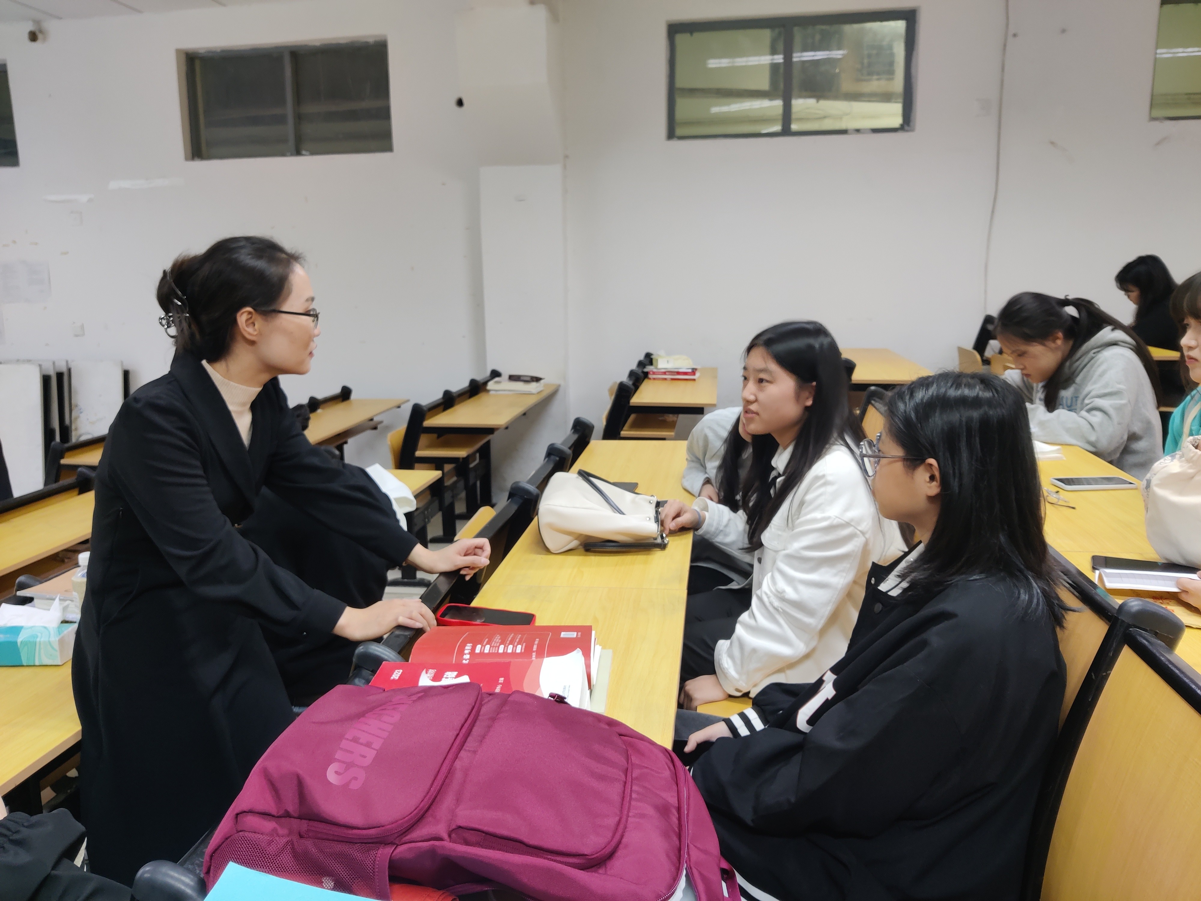 论文指导教师冯小霞对学生进行毕业论文指导