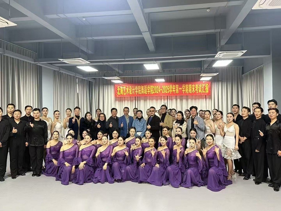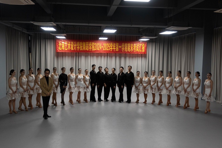 近日,舞蹈学院舞蹈表演专业国标舞方向的学生们迎来了大学首次的期末考试。此次考试不仅是对学生们入学以来学习成果的检验,更是一场艺术交流与展示的盛会。广西艺术学院国标舞专业党支部书记张岩,以及柳州职业技术学院体育舞蹈教师杨友洪一行受邀莅临北海艺术设计学院,参访交流并共同见证了学生们的精彩表现和艺术成长。