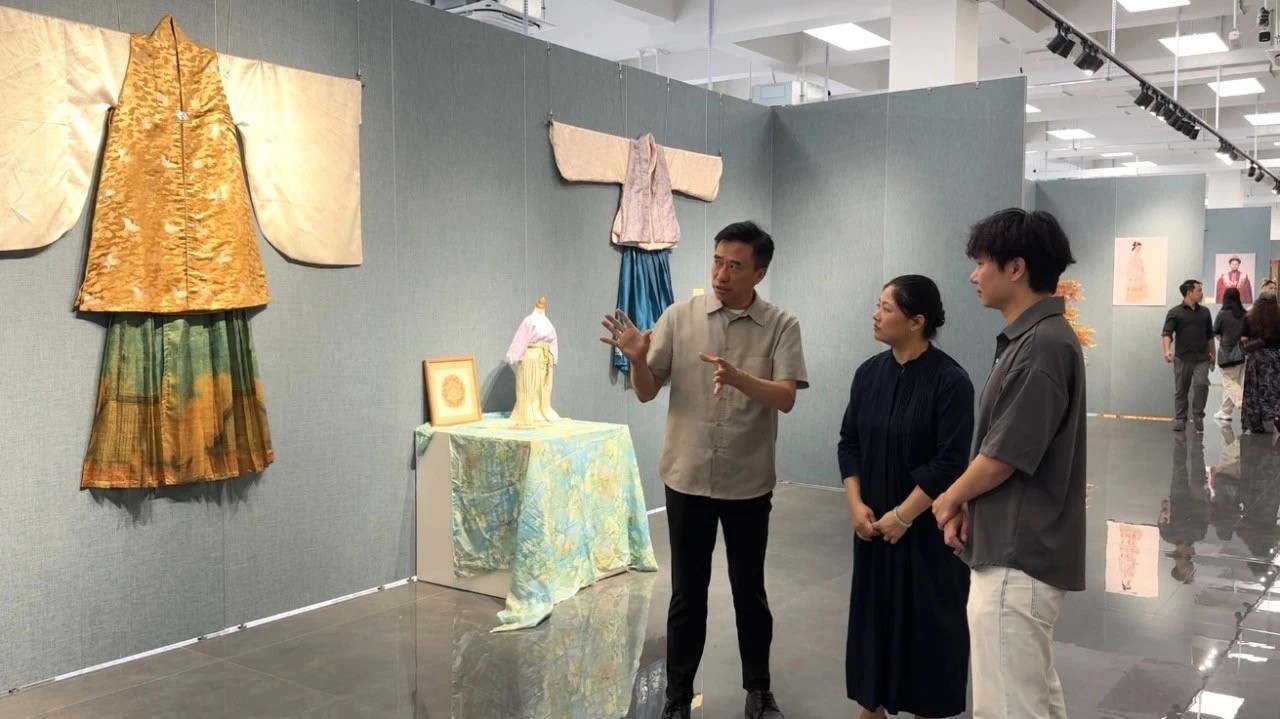 展览开幕式上,副校长陶立阳在致辞中表示,学校对中华优秀传统文化教育高度重视,此次作品展体现了学生对优秀传统文化的深刻理解与创新表达。展望未来,陶立阳副校长鼓励学生利用人工智能等科技手段,将传统与现代融合,推动中国传统服饰文化走向世界。