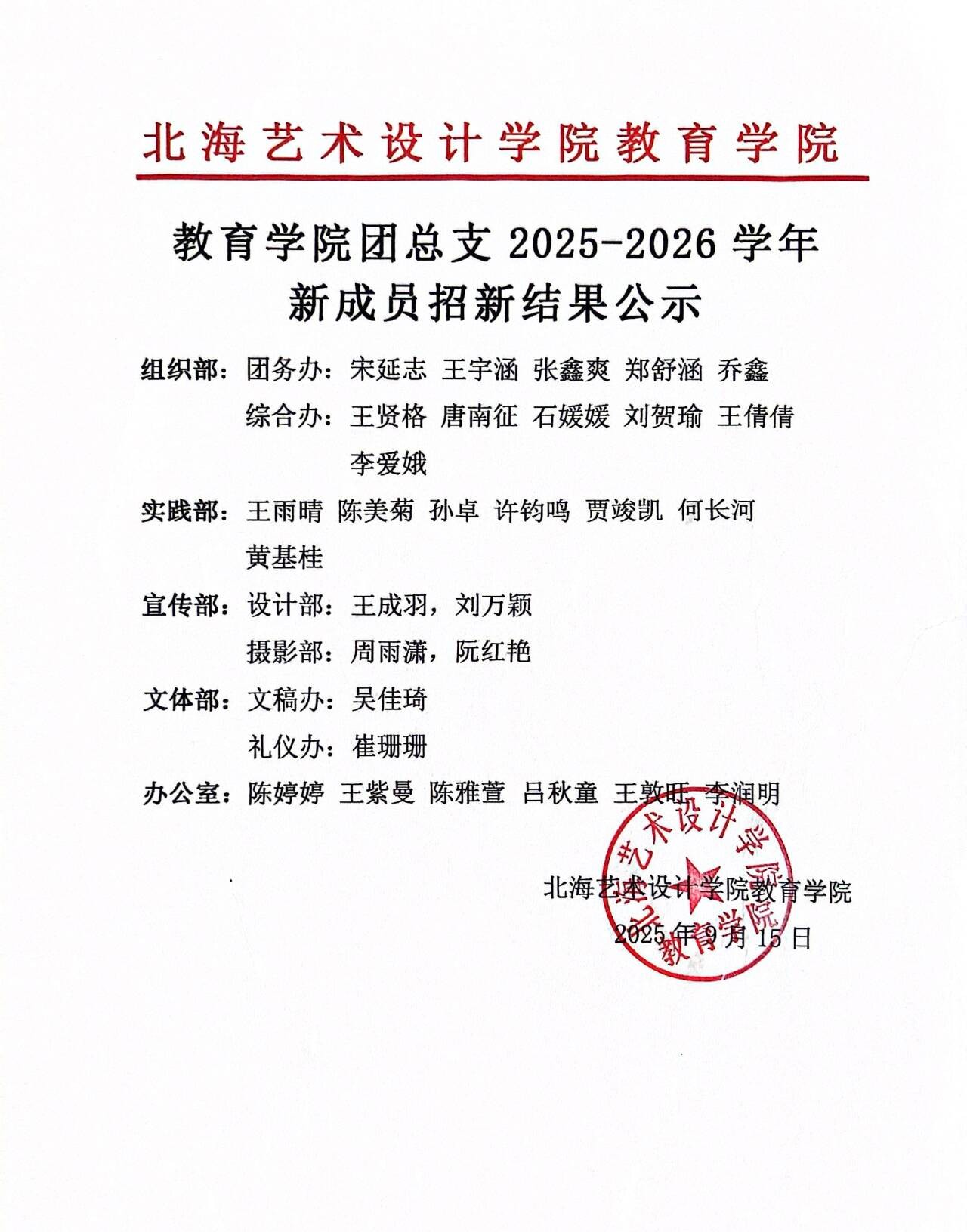 附:教育学院团总支2025-2026学年新成员招新结果名单: