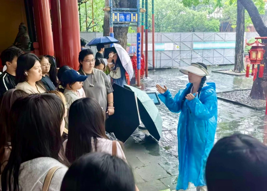 随后,师生一行前往北京民俗博物馆。这座依托东岳庙古建筑群建立的博物馆,集中展示了老北京的民俗文化与生活智慧。从传统节庆习俗、民间手工艺,到老北京的衣食住行,丰富的展品让学生们仿佛穿越时空,真切感受到民俗文化的独特魅力。学生们带着文学学习的视角主动思考,看到传统节庆相关展陈时会轻声讨论曾在文章中读到的民俗描写;观察民间手工艺品时会认真记录细节,试图将其与文学作品中的生活场景对应。这种带着学习目的的探索,让民俗文化不再是遥远的符号,而是化作了理解文学、感知生活的生动教材,也让“文学源于生活”的认知在实践中愈发清晰。