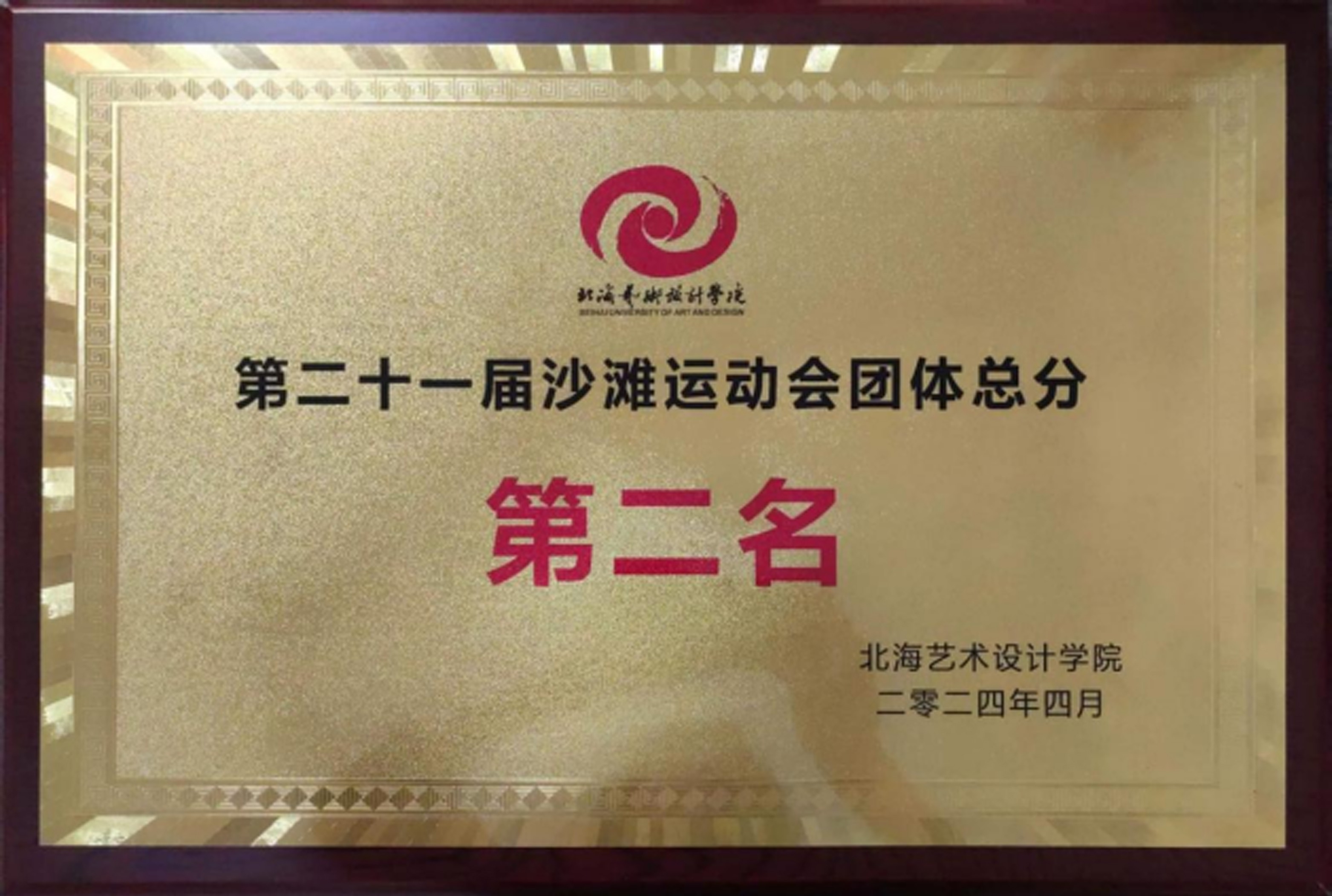 (第二十一届沙滩运动会团体总分第二名奖状)