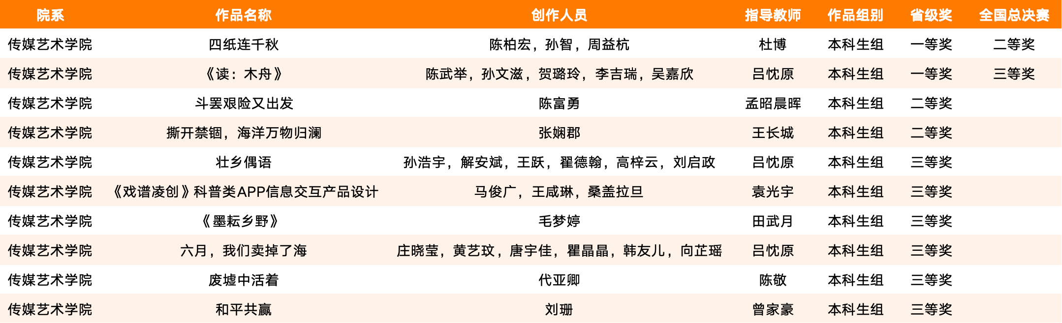 大赛自启动以来,传媒艺术学院将备赛工作纳入人才培养实践重要环节,从资源保障到指导服务全程发力。学院多次召开专项会议梳理备赛重点,为师生搭建起高效的创作实践平台;指导教师团队结合行业前沿趋势与学生特长,围绕地方建设、文化传承等方向开展针对性辅导,帮助学生优化创作思路;参赛师生则主动融合专业知识与创新思维,反复打磨作品细节,历经校级选拔、省级评审、全国总决赛的多轮严苛考验。