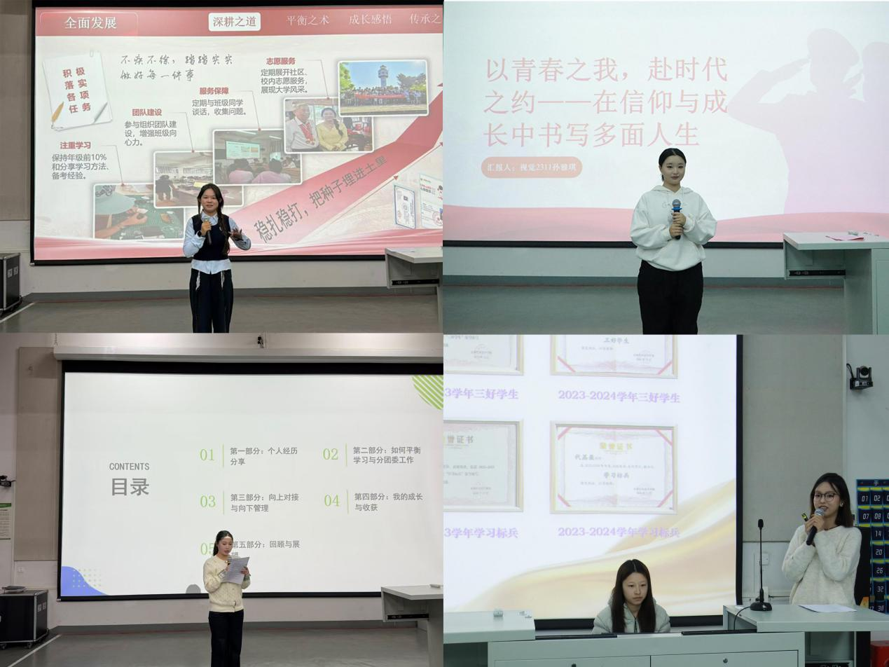 此次活动邀请本学院优秀学子进行学习经验分享,她们分别从创新创业、平衡学业与工作、思想锤炼以及设计竞赛层层深入,帮助大家明确成长方向、汲取实践智慧,在专业精进、责任担当与信念塑造中找准前行路径。